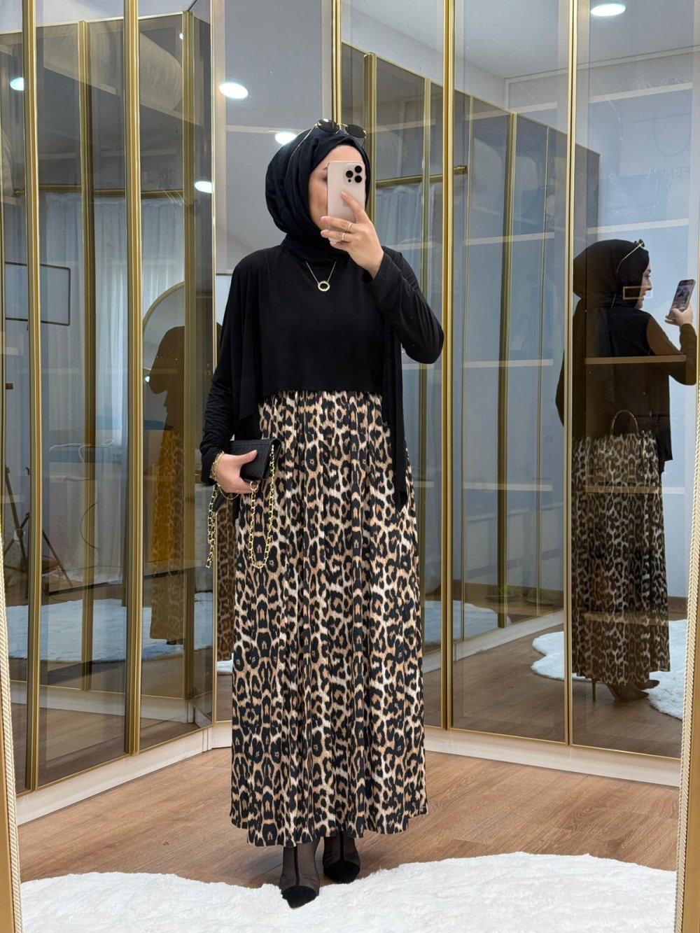 Leopar Desen Tilda Elbise Siyah