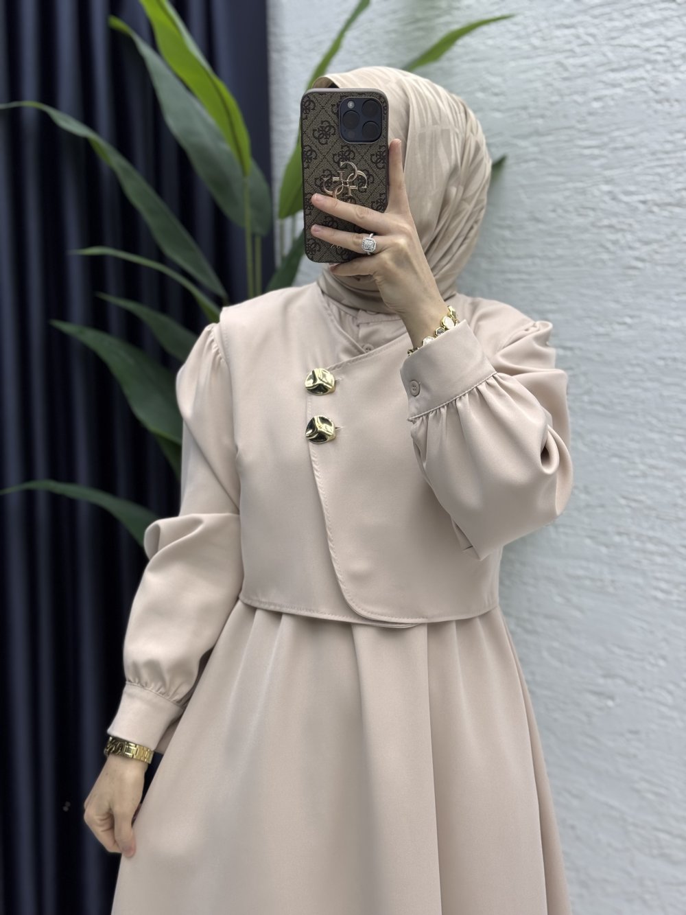 Leyza Elbise Tesettür Giyim Taş Rengi