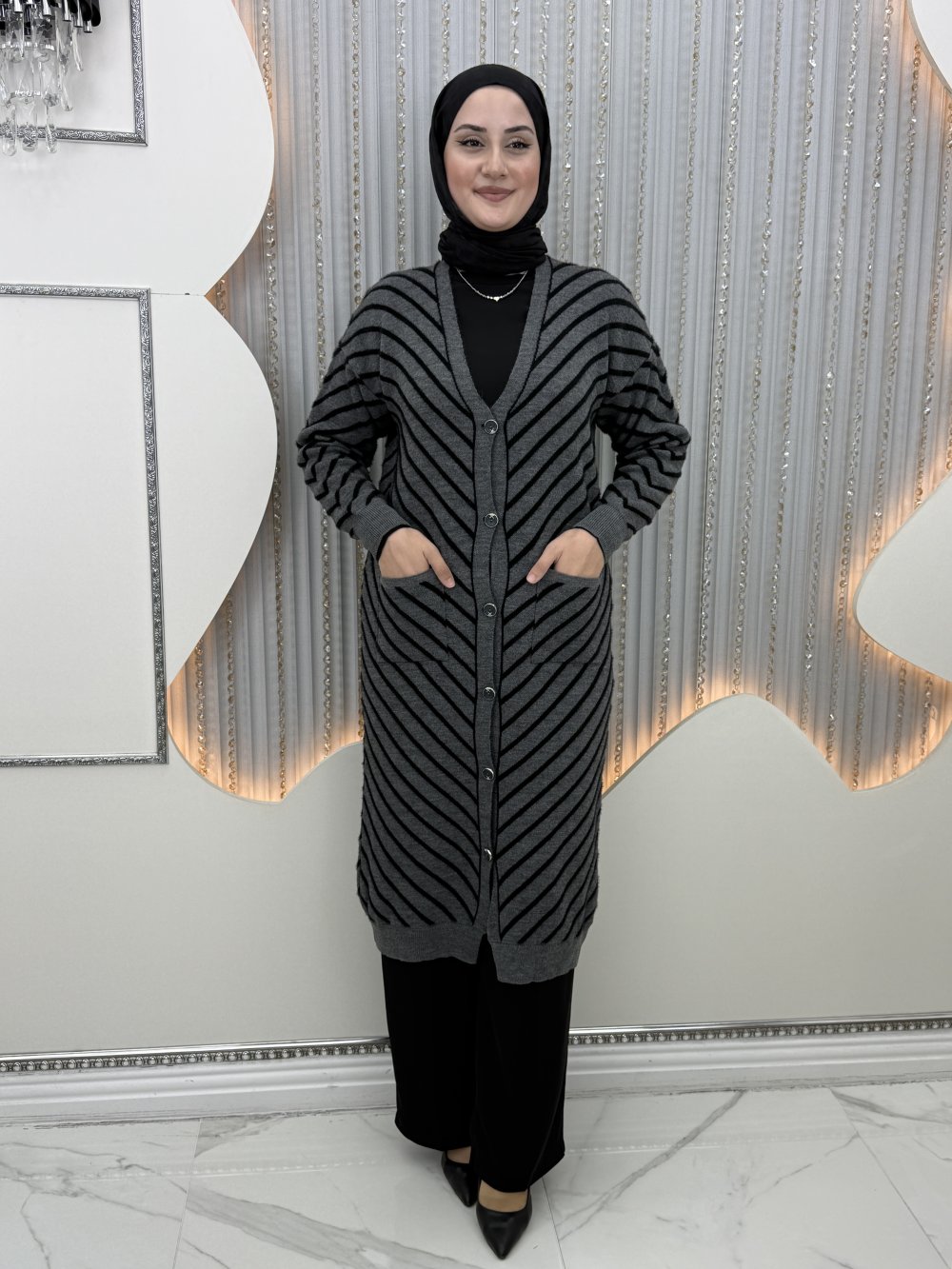Mehlika Çizgili Hırka Antrasit