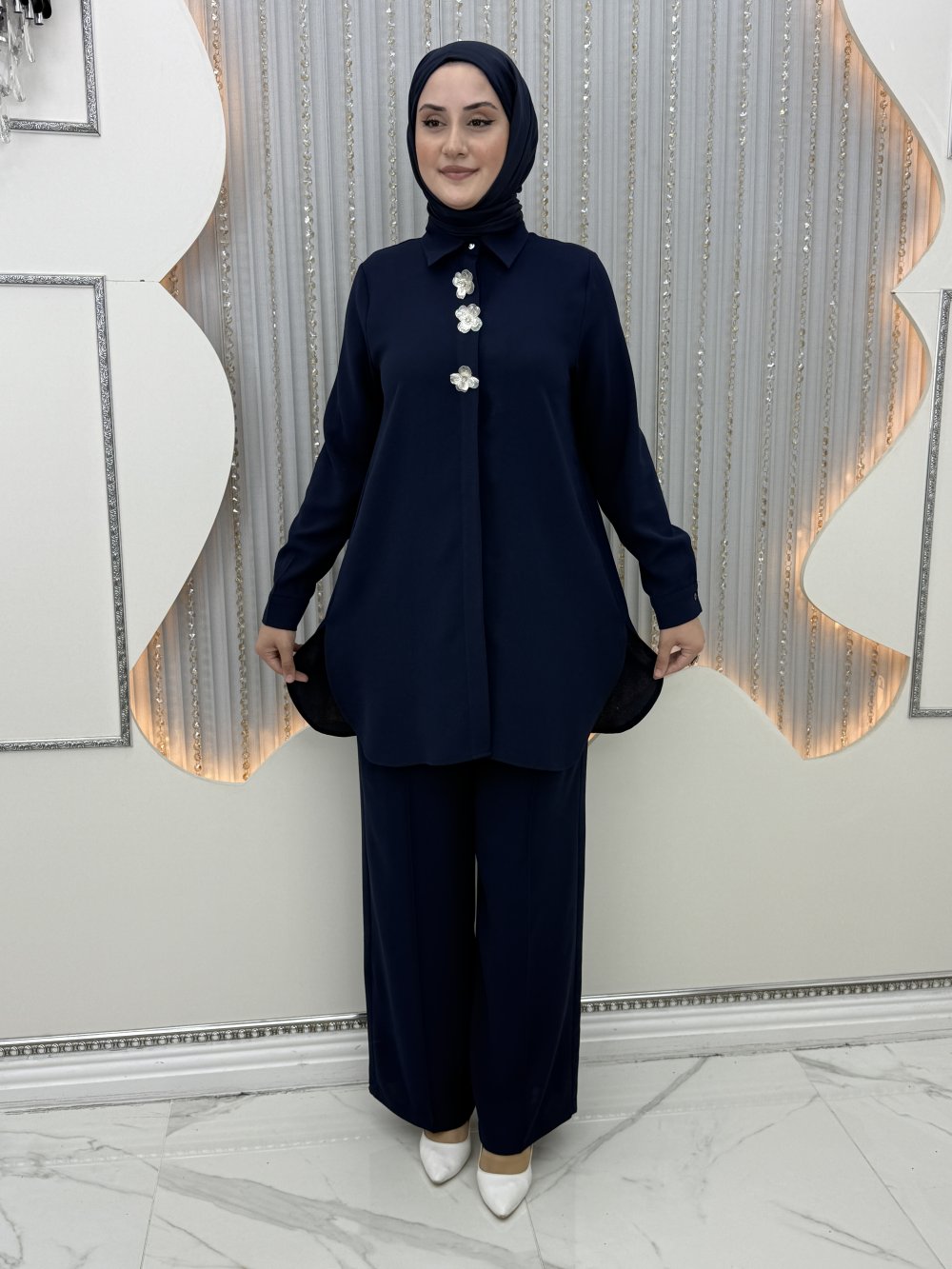 Tunik etek ucu yanlardan oval yırtmaçlı