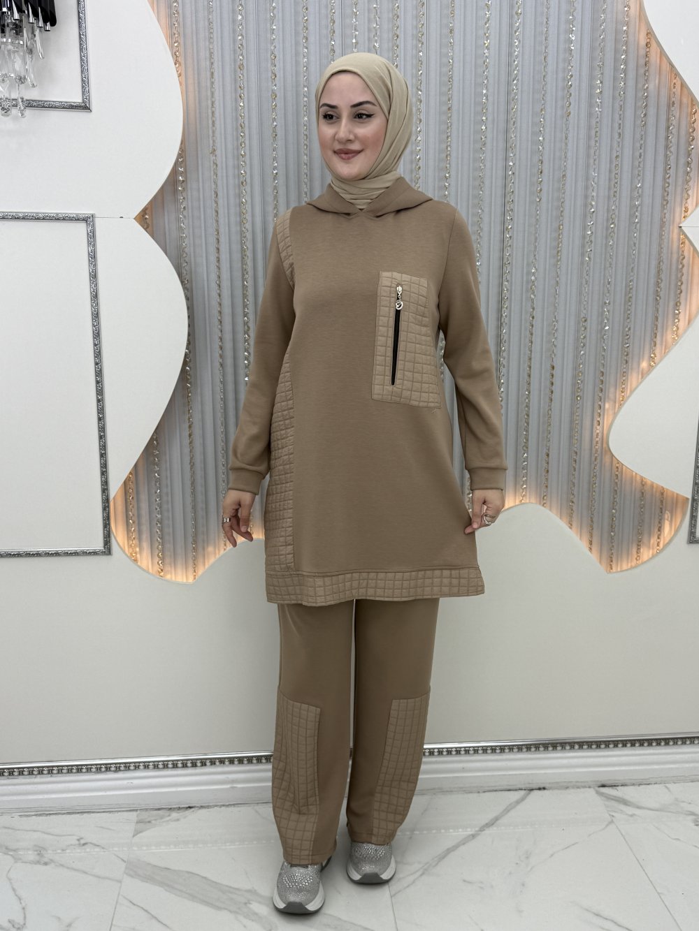 Pantolon etek ucu kapitone detaylıdır