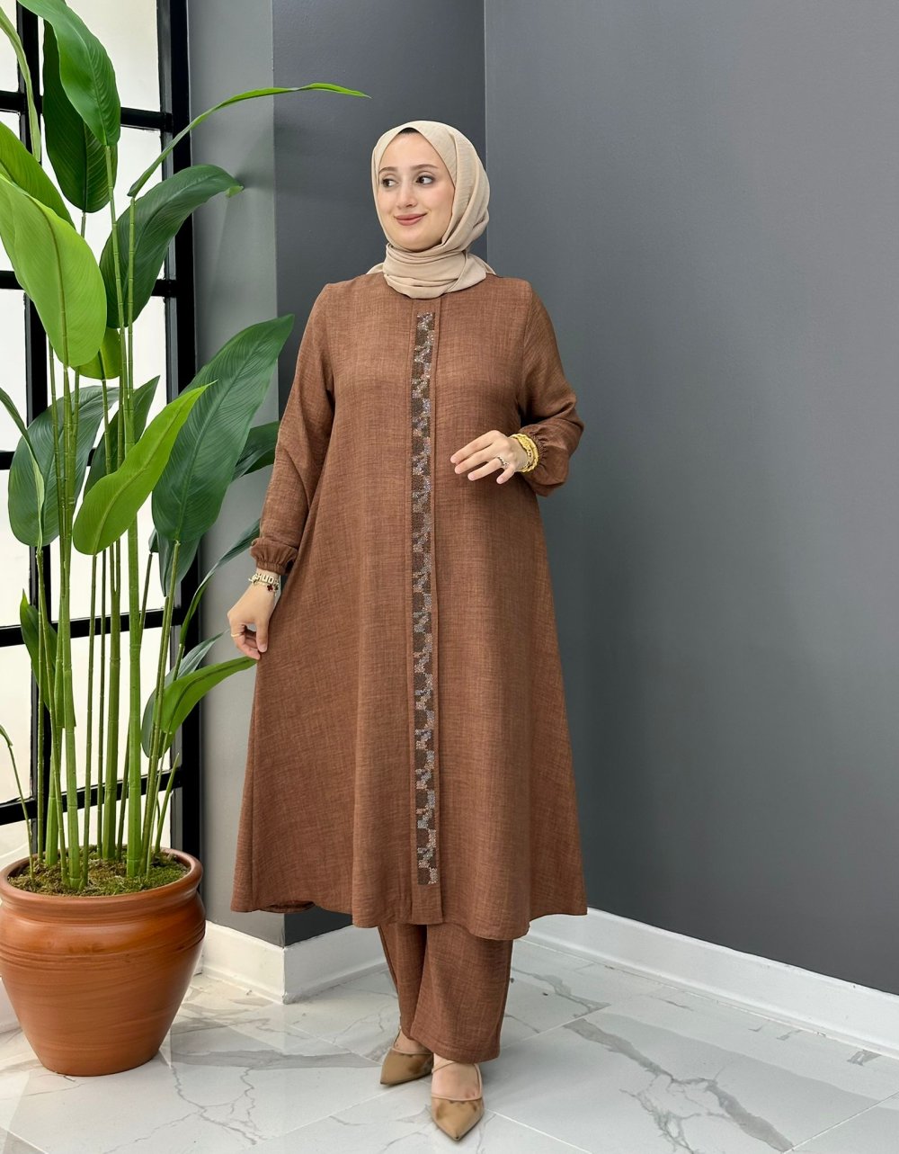Soft keten kumaş Tunik boyu 110-115 cm Pantolon boyu 100 cm