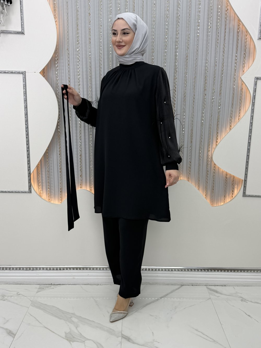Kolları taş tüy detaylı