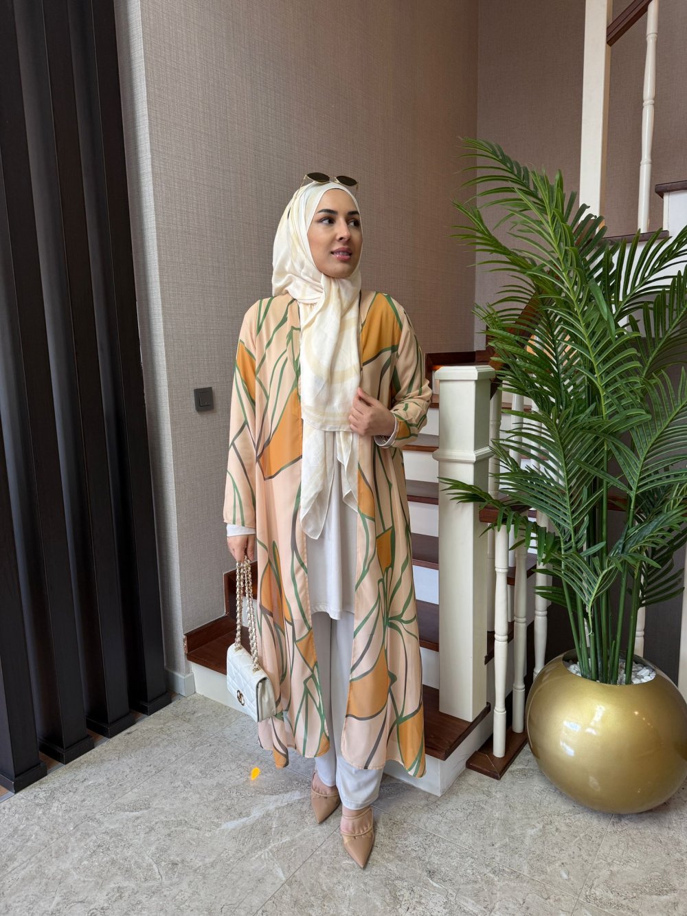 Dış kap dijital baskılı şifon kumaştır, 125 cm’dir.