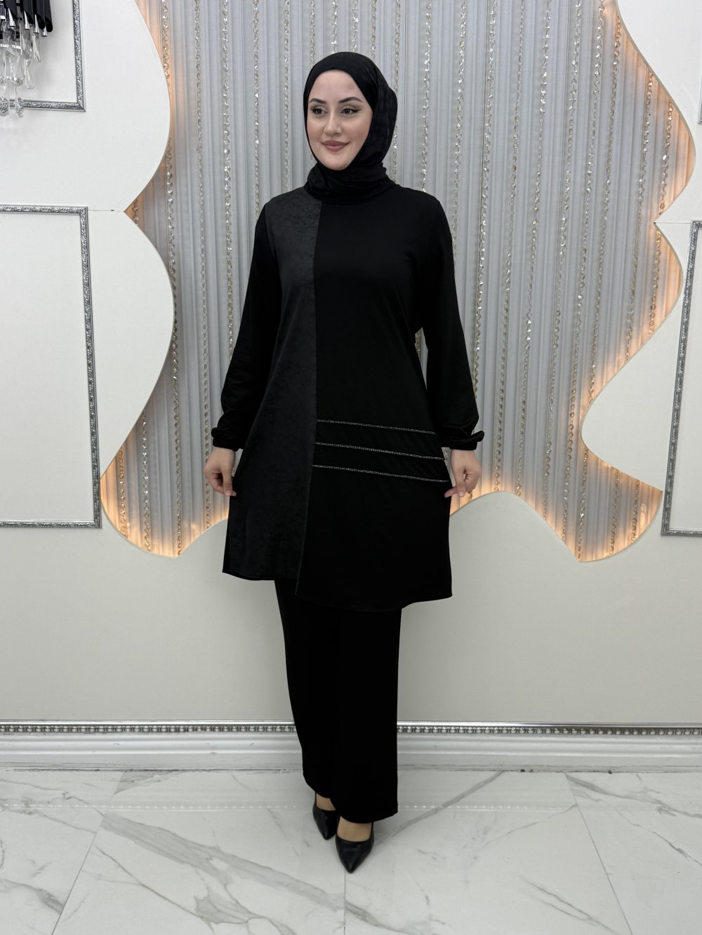Nadiye Pantolonlu Takım Siyah