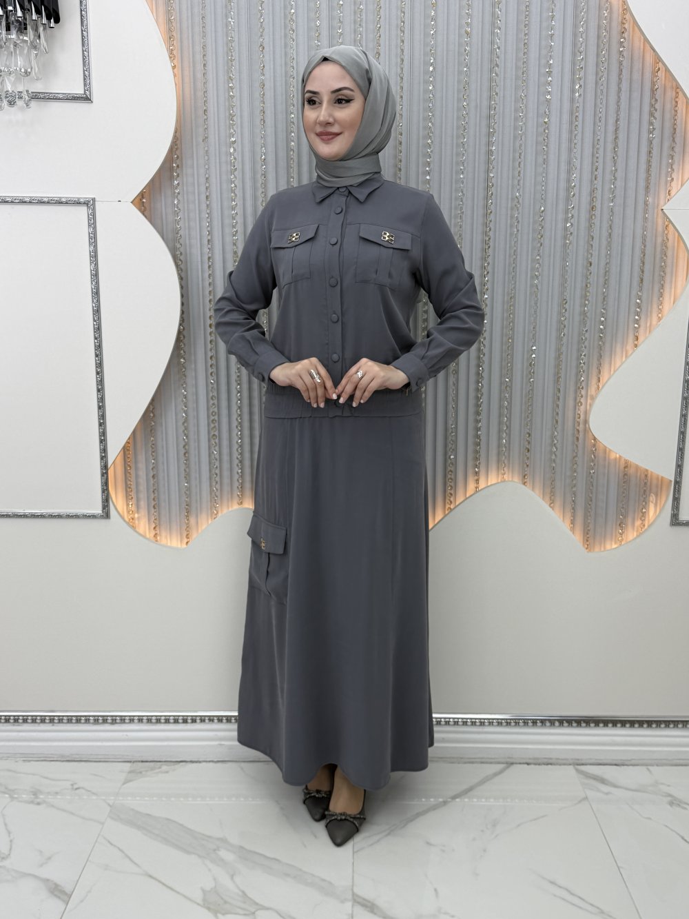 Nazenin Etekli Takım Gri