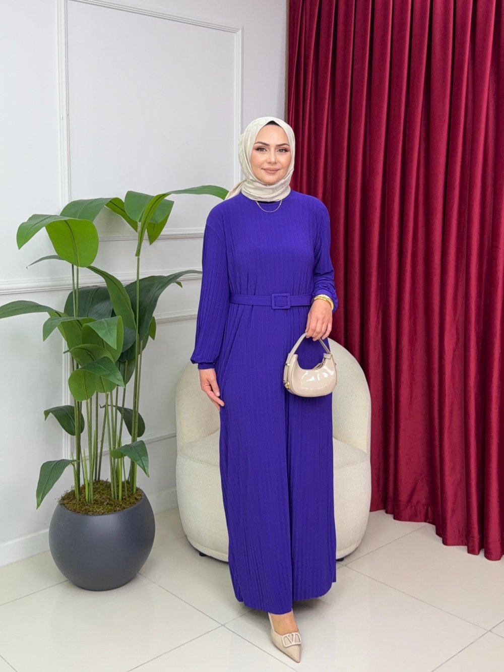 NAZLI PİLİSELİ ELBİSE - MOR