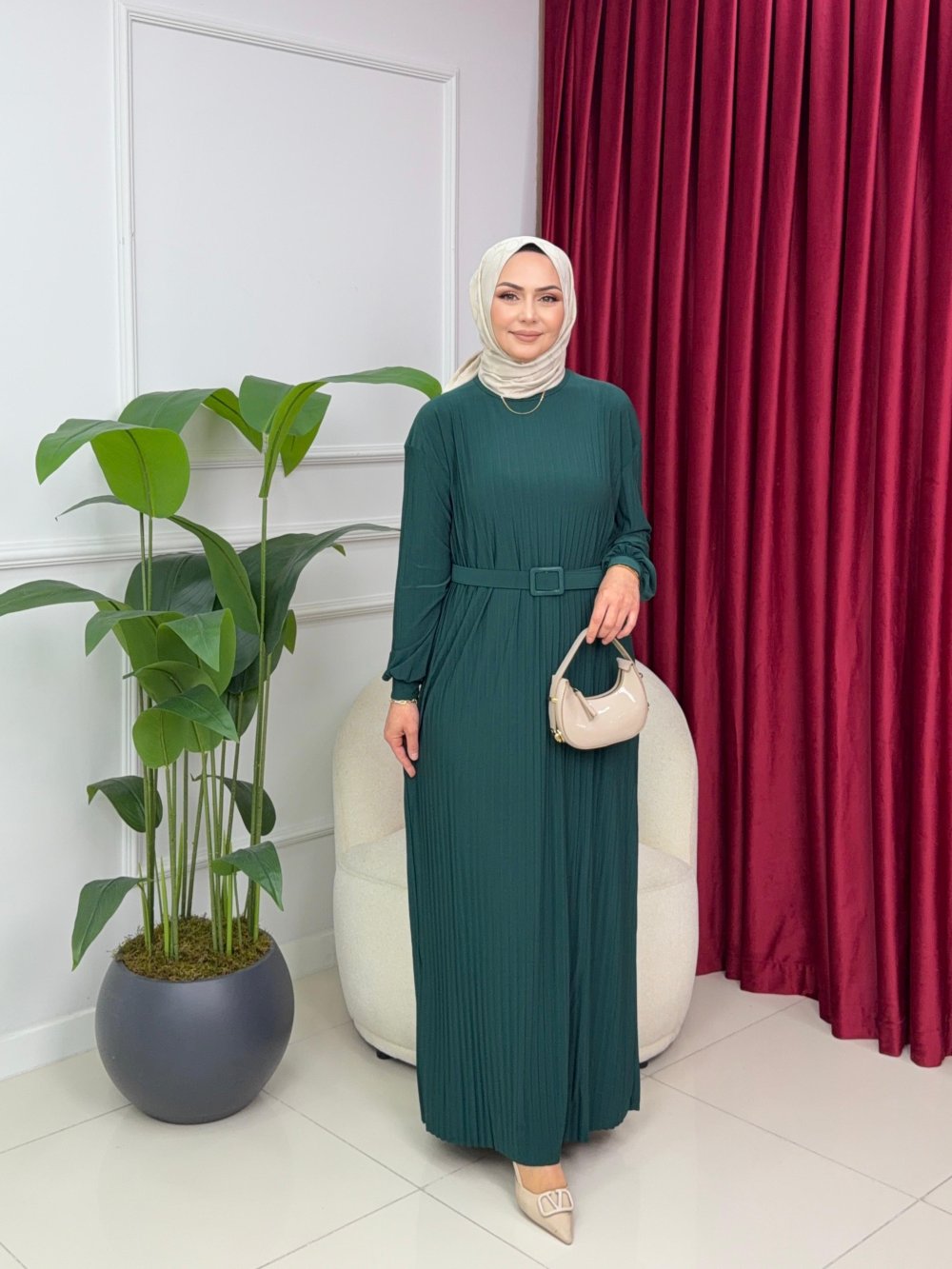NAZLI PİLİSELİ ELBİSE - ZÜMRÜT