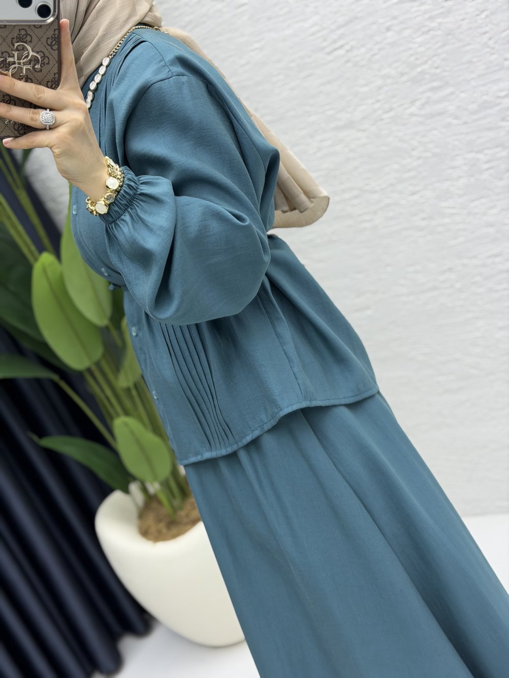 Negahan Etekli Takım Tesettür Giyim Turkuaz