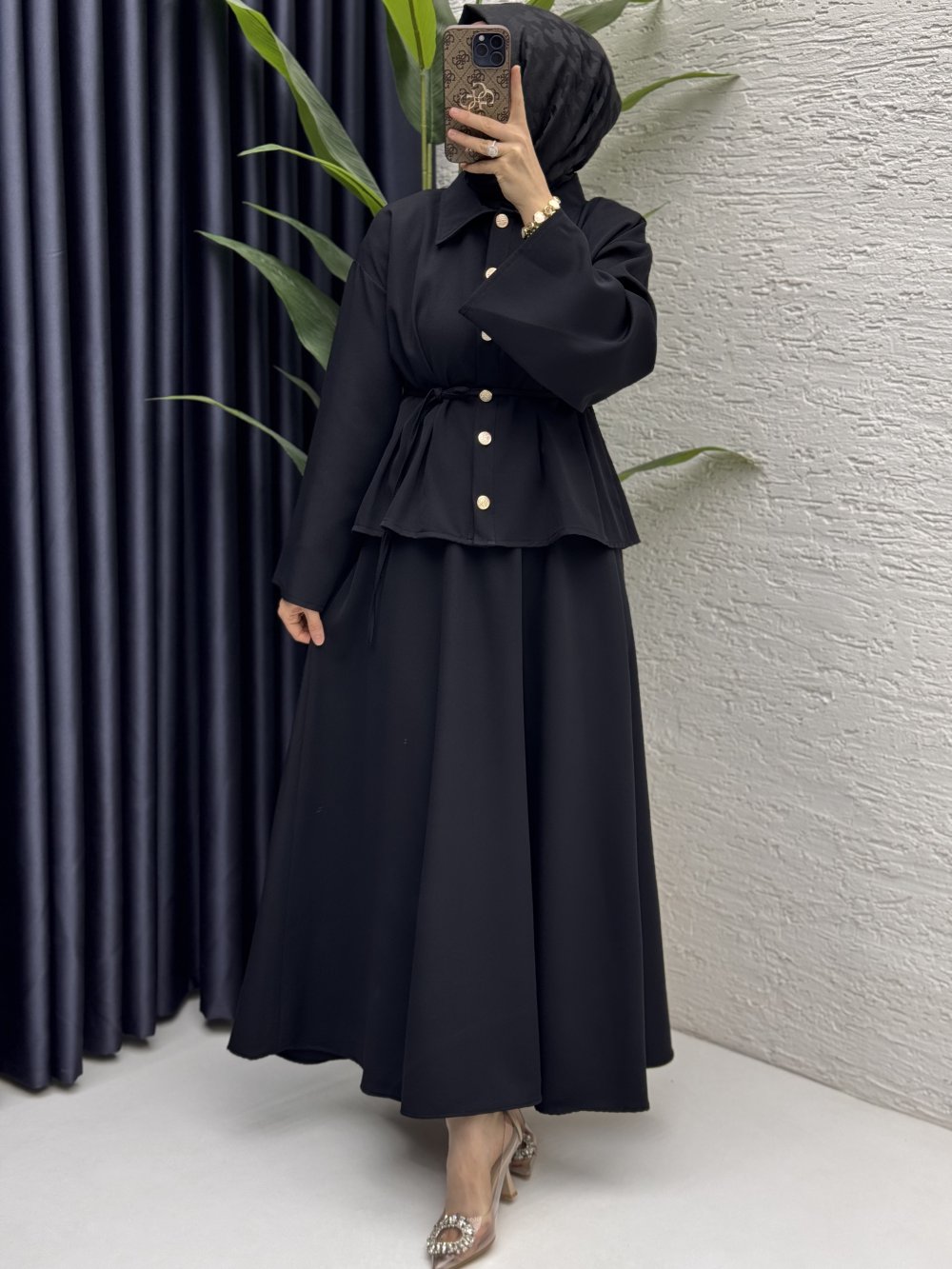 Nihal Etekli Takım Tesettür Giyim Siyah