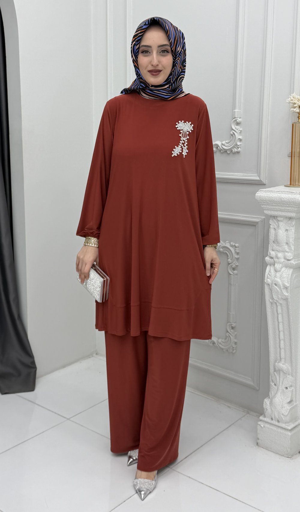 Nilda  Takım, hem iş hem de günlük hayatınızda rahatlıkla tercih edebileceğiniz çok yönlü bir parçadır. Şıklığı konforla buluşturan bu tasarım, sezonun en gözde modellerinden biri olacak!