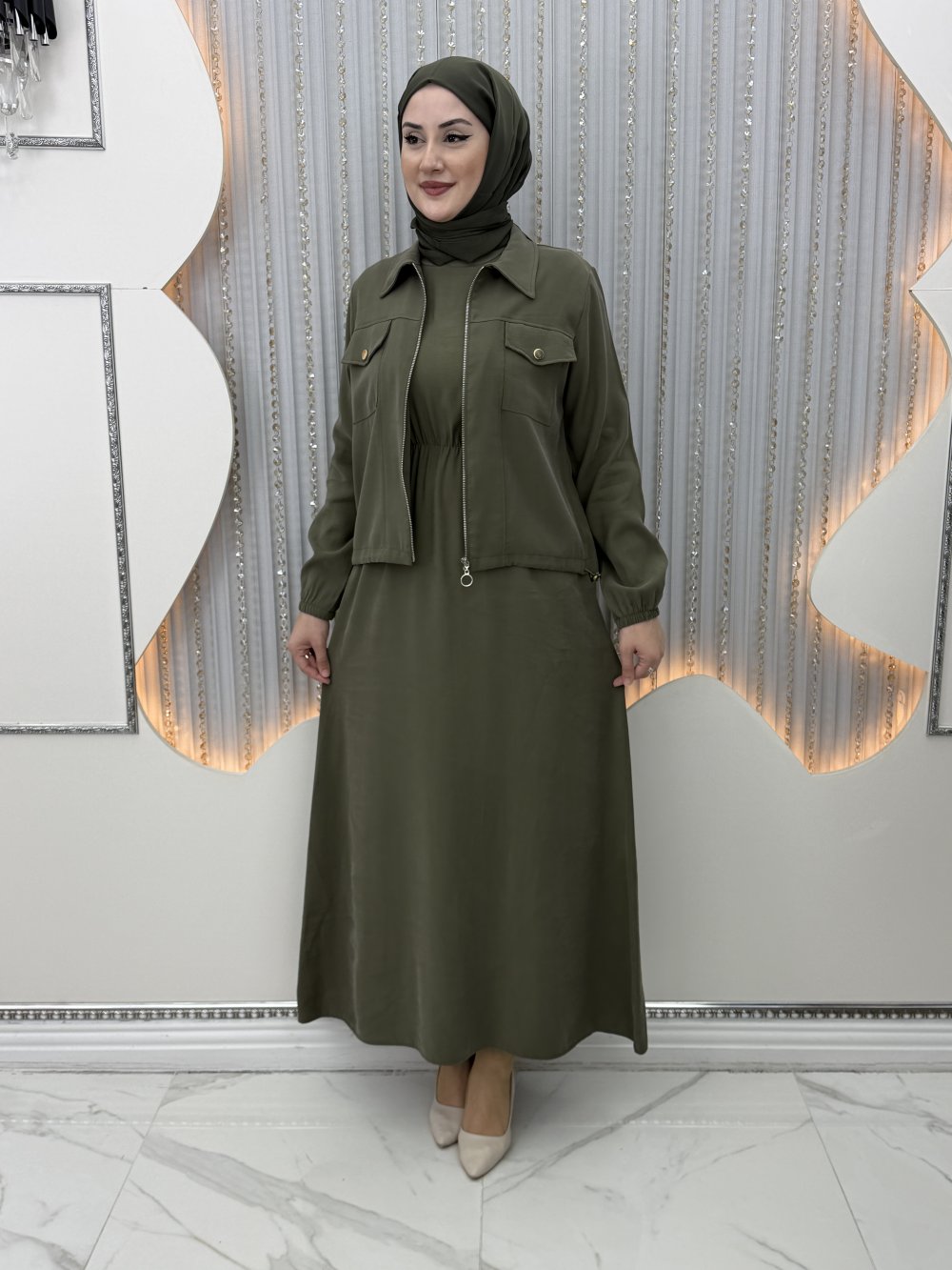 Nursena Elbiseli Hırka Haki