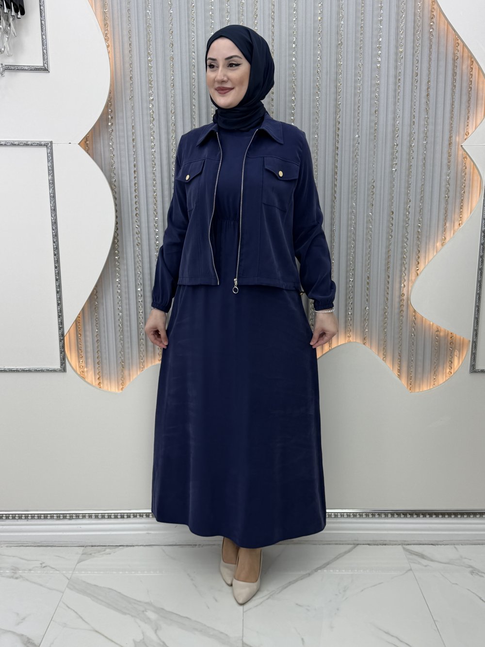 Nursena Elbiseli Hırka Lacivert