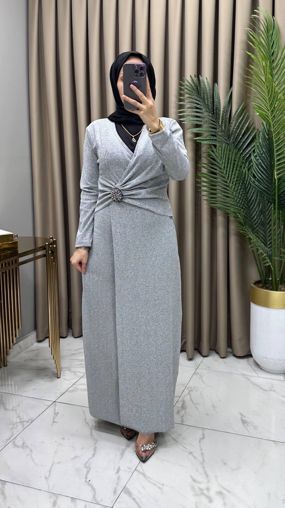Özüm Abiye Elbise Gri