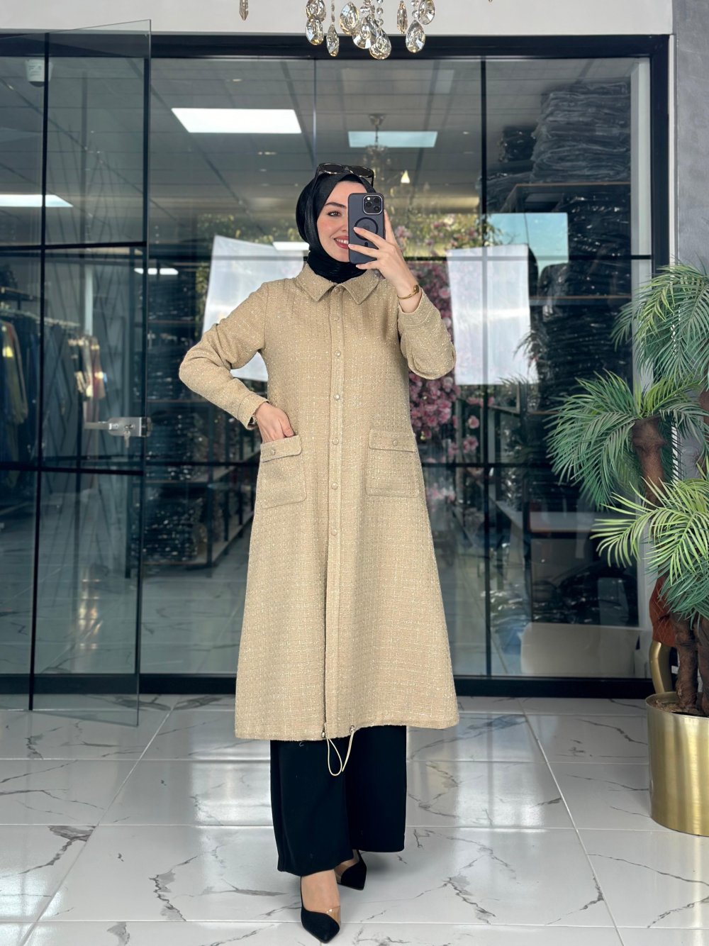 Kumaşı tüvit kumaştır. Kendinden simlidir. Önü düğmelidir.