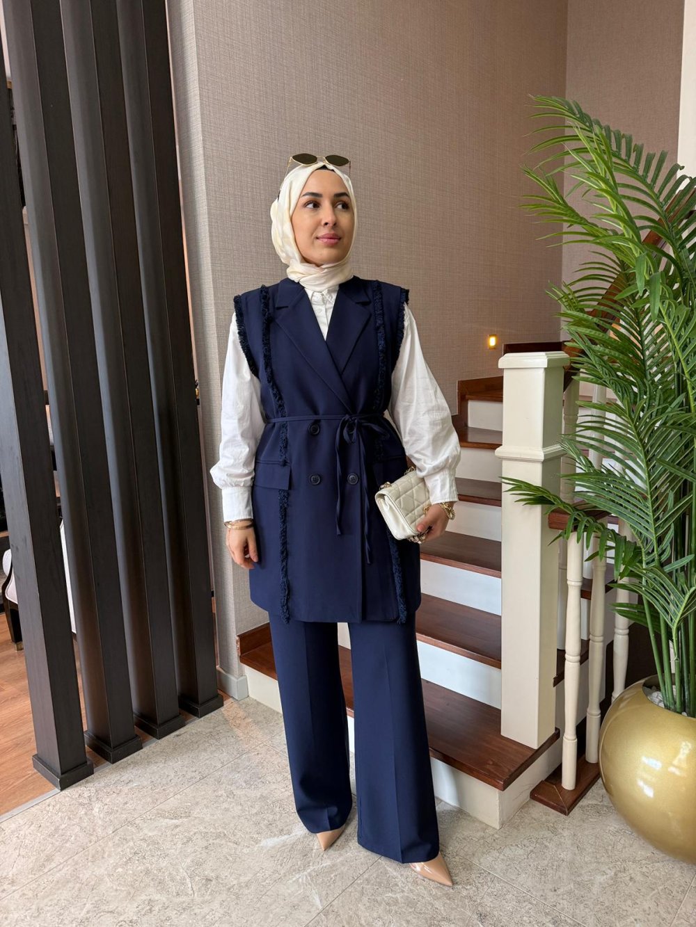 Püskül Detay Yelek Takım Lacivert