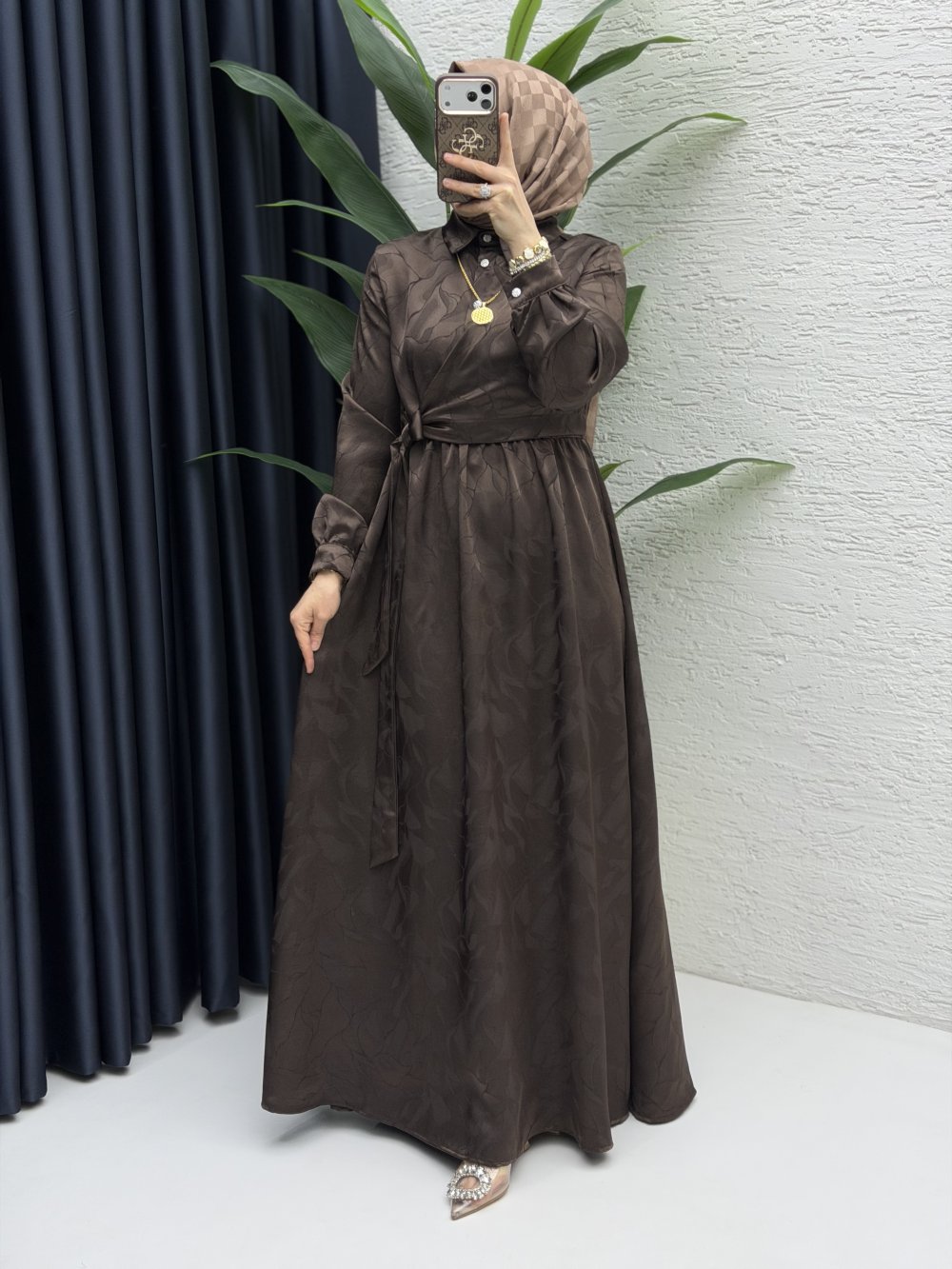 Şahika Elbise Tesettür Giyim Kahve