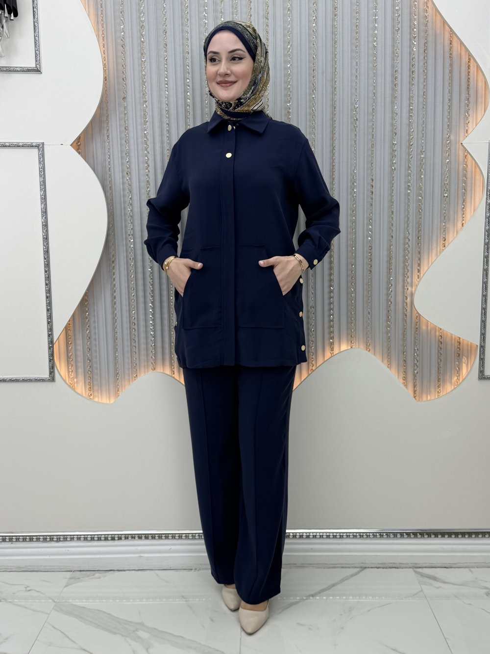 Tunik etek ucu yanlardan çıt çıt düğmelidir