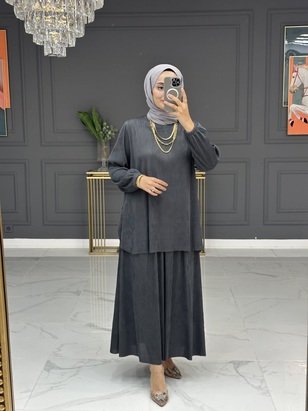 Seda etekli takım - gri