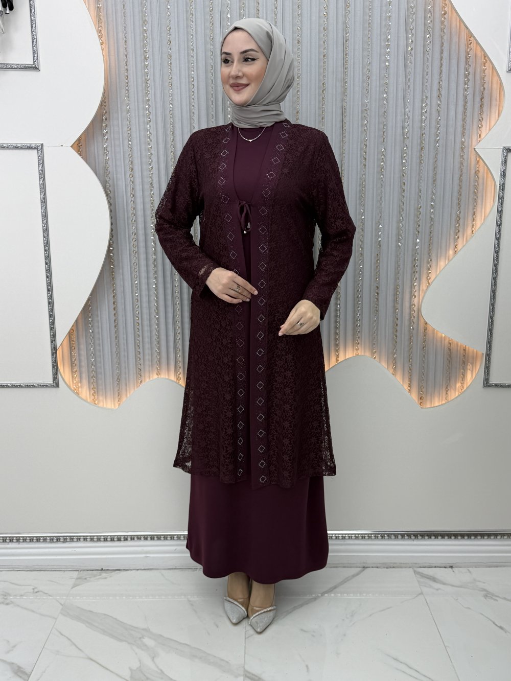 Serin Elbiseli Hırka Bordo