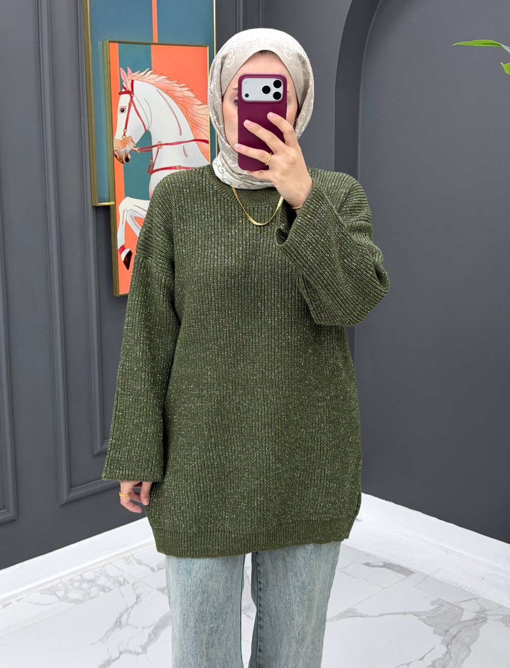 Simli Triko Kazak - Yeşil