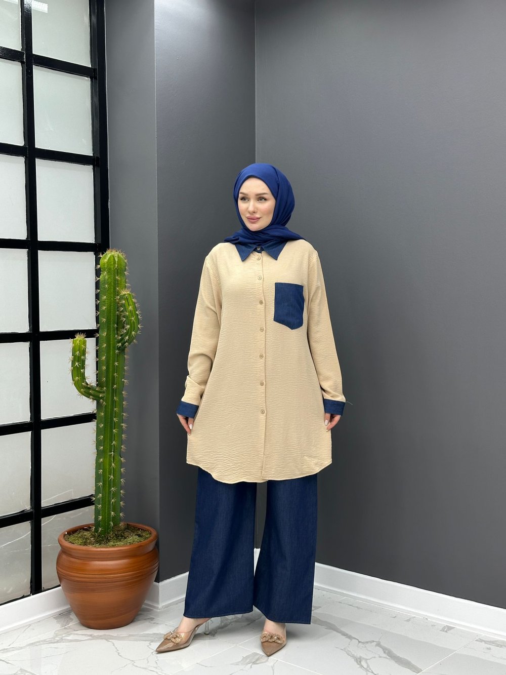 Tunik airobin pantolon kot kumaşında