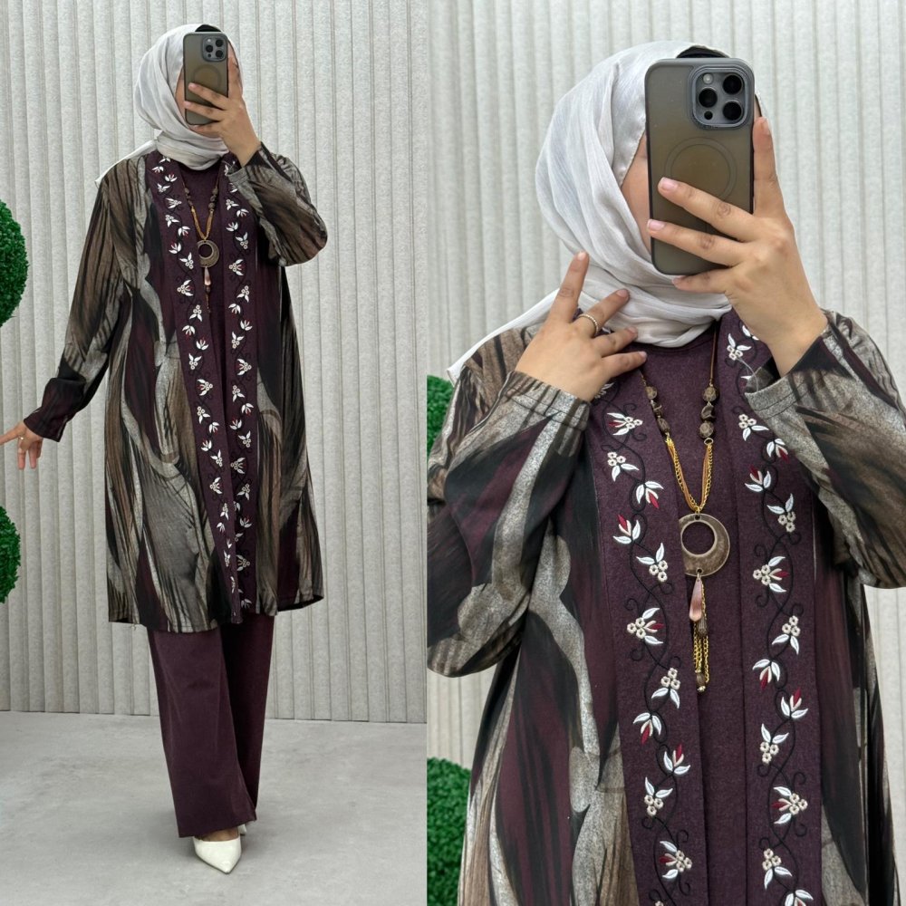 Hırka yumoş kumaş özel işlemeli