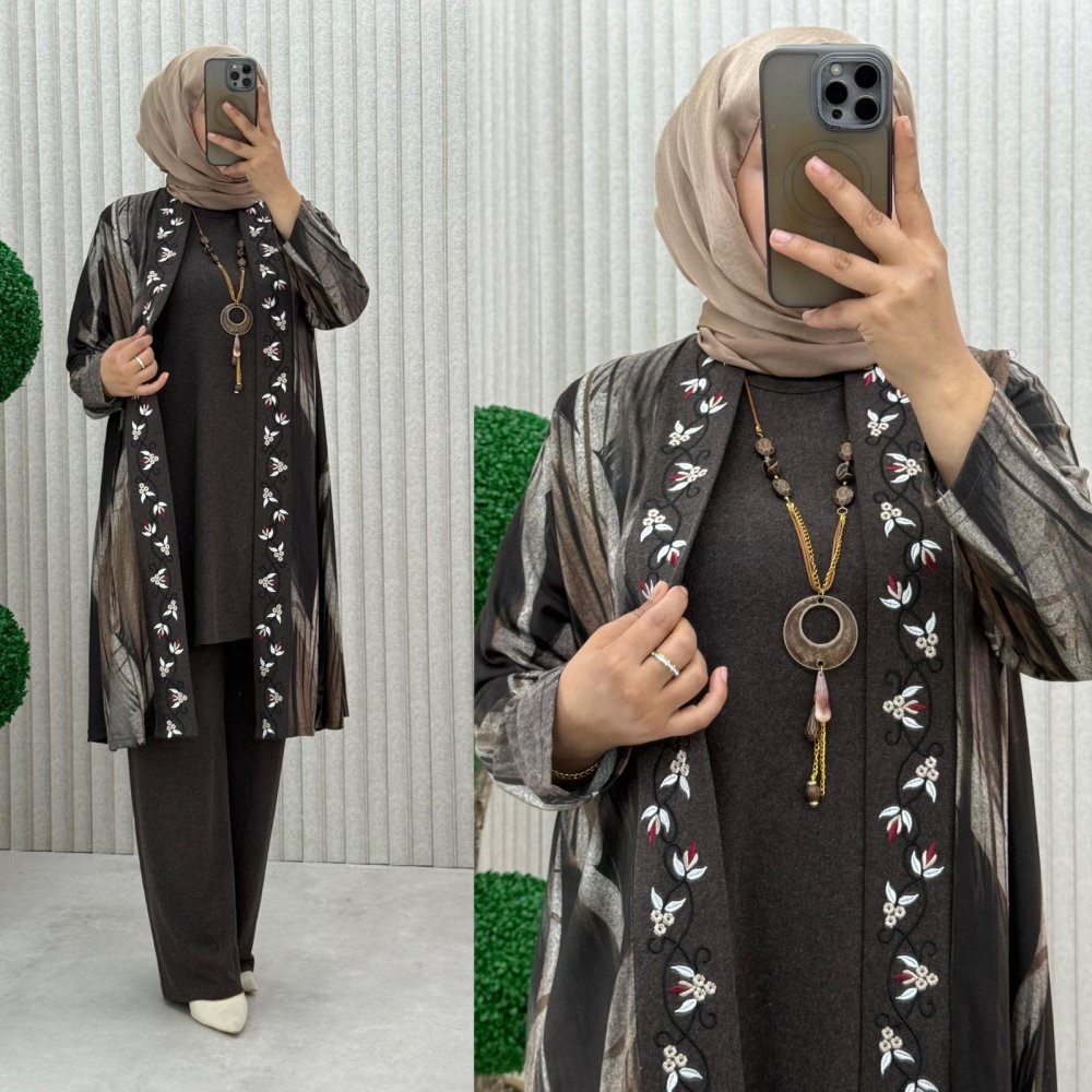 Hırka yumoş kumaş özel işlemeli