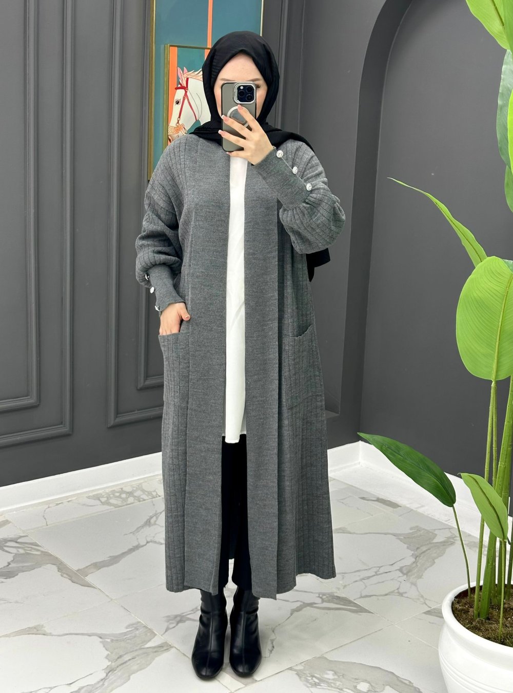 Yade Uzun Hırka - Gri