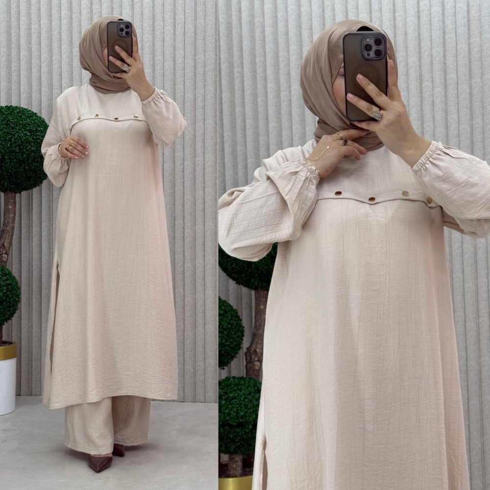 ?2 beden  göğüs 57 cm Tunik Basen 70 cm Pazu 20 cm Pantolon Bel açık 47 cm