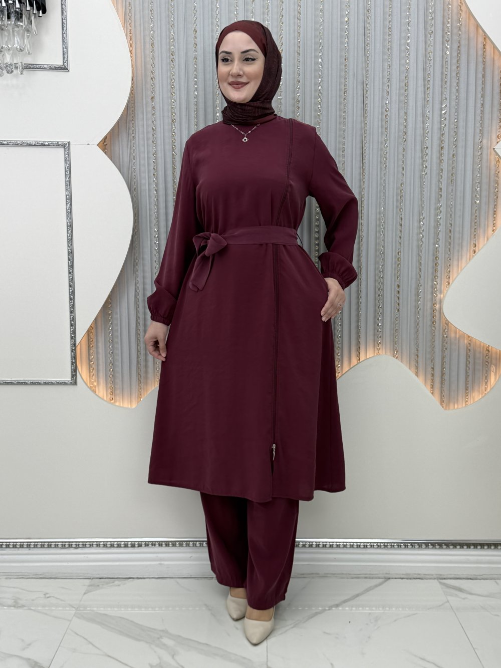 Yeliz Pantolonlu Takım Bordo