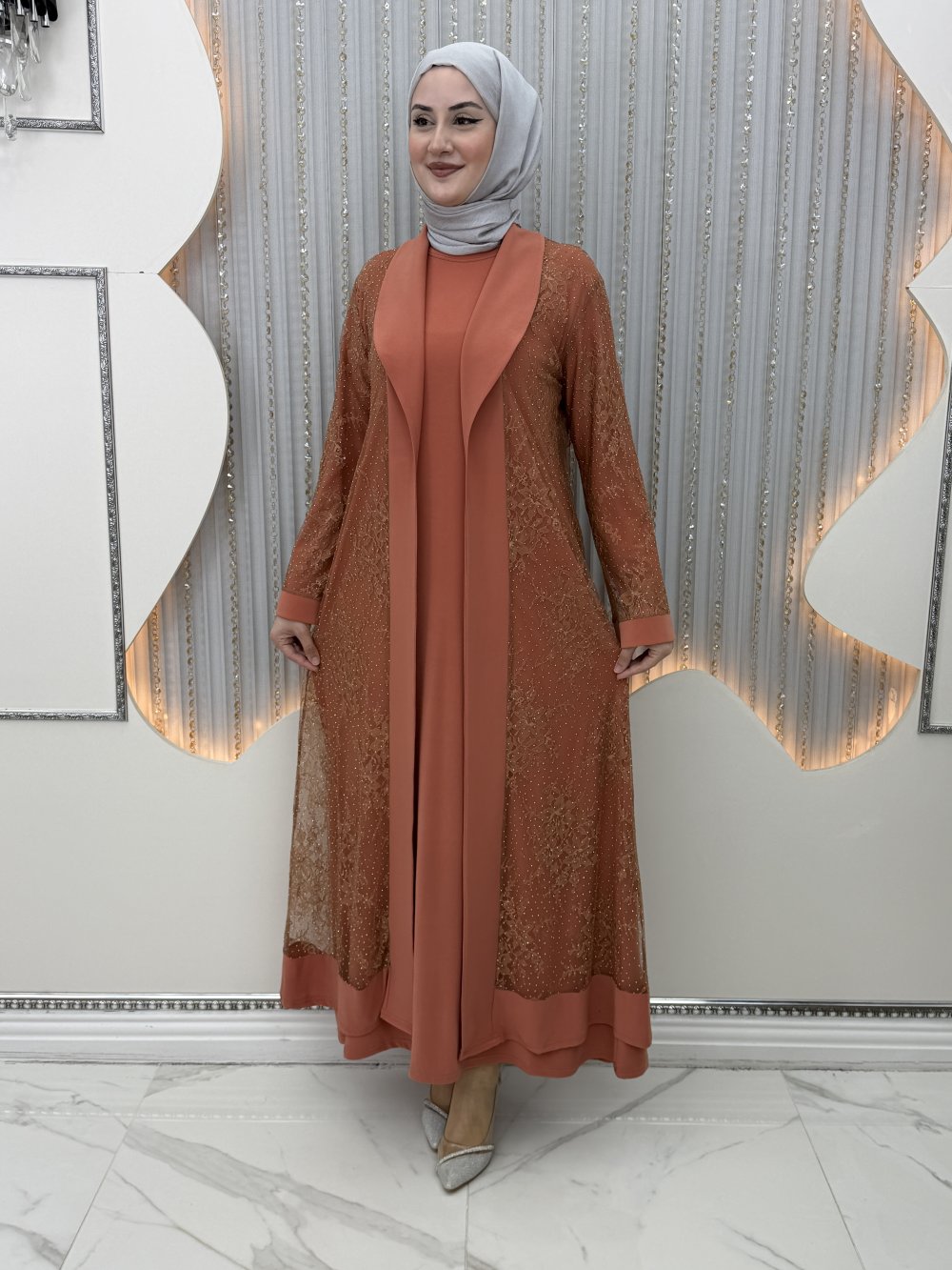 Zarif Elbiseli Hırka Kiremit