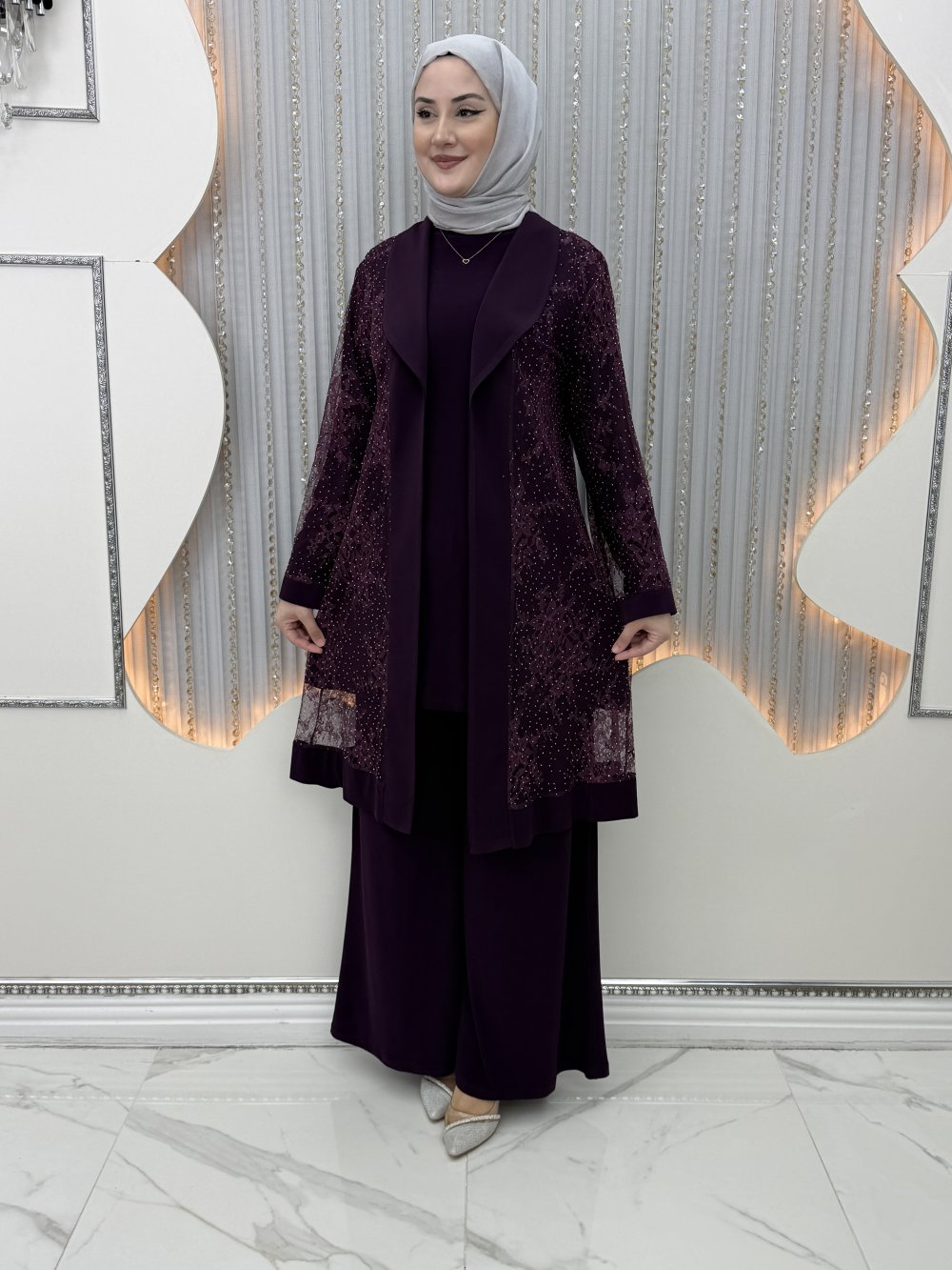 Megan Taşlı Takım  Mürdüm